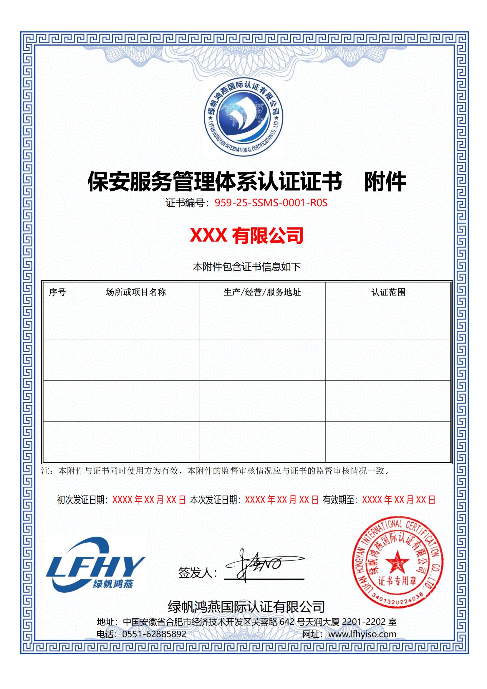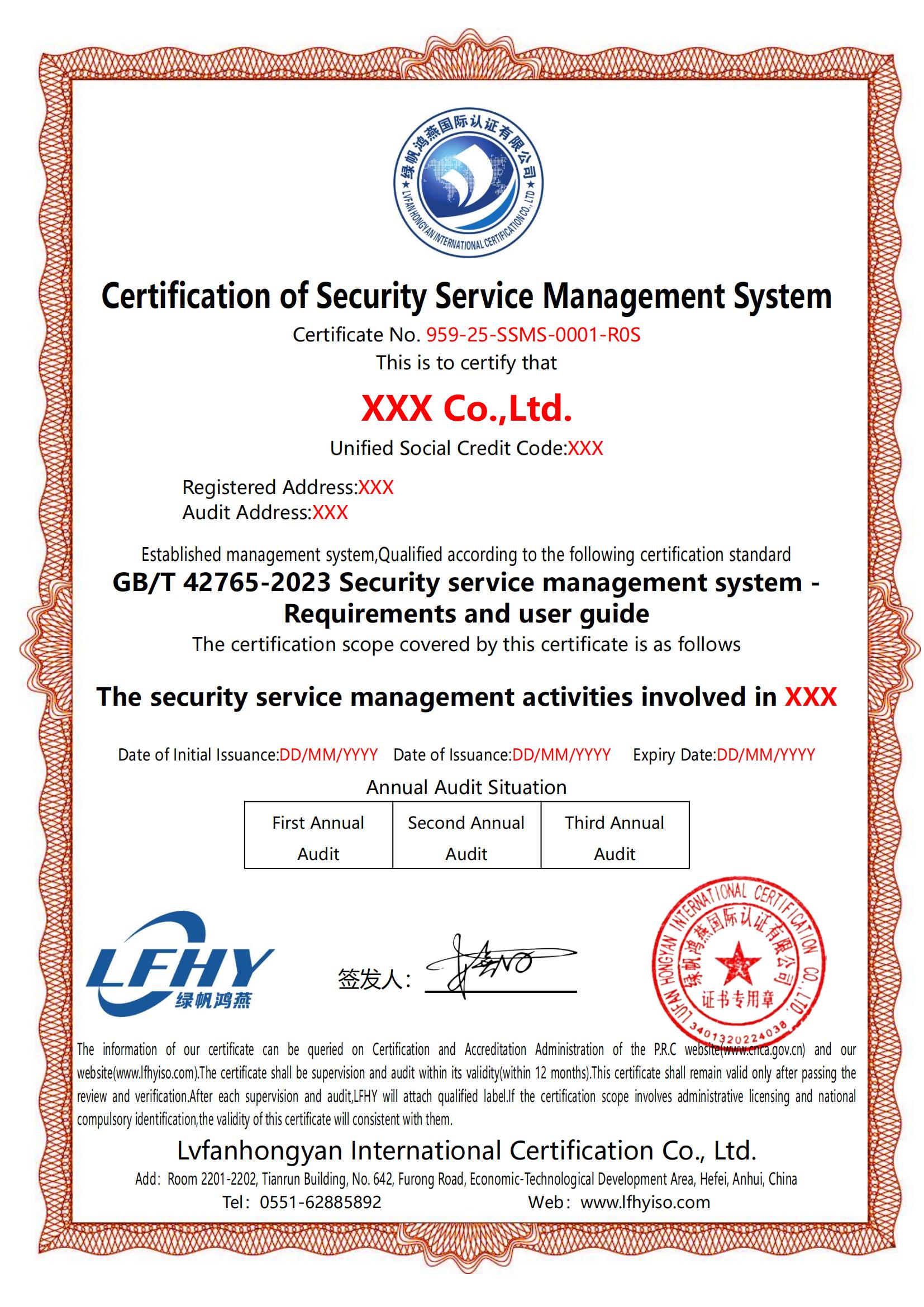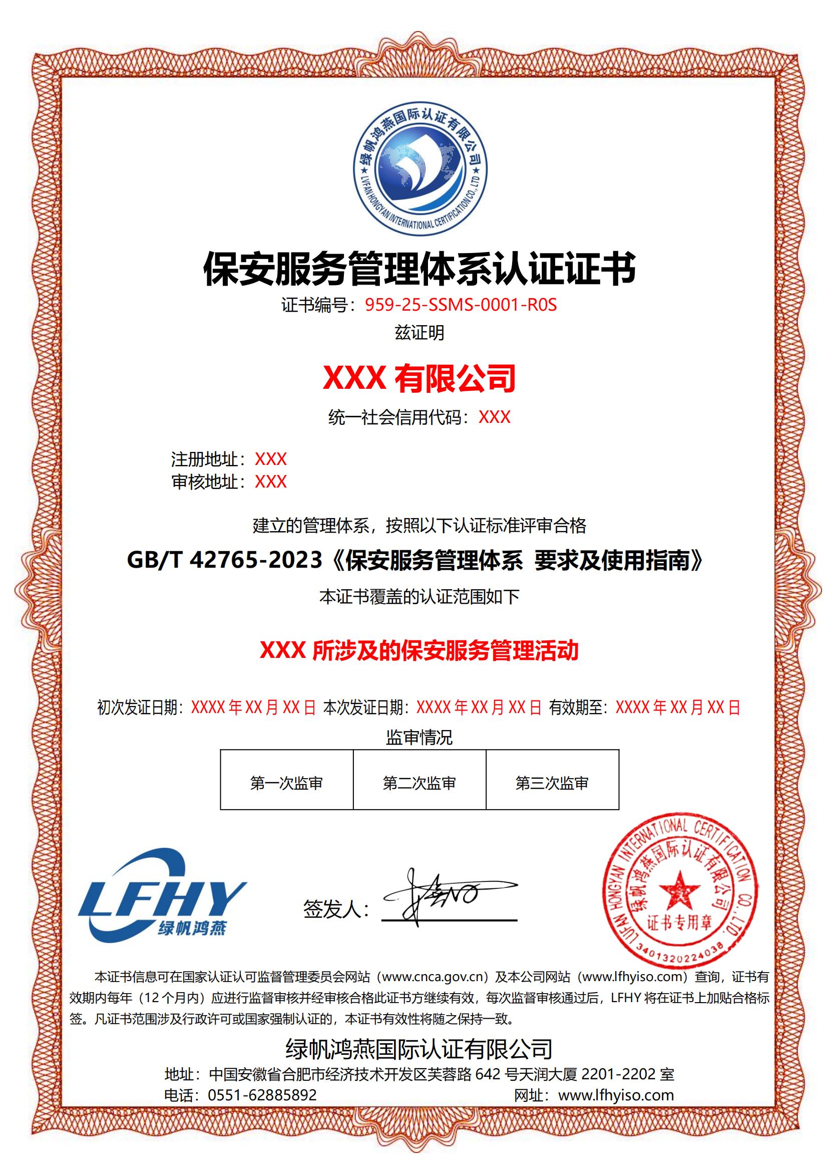 《保安服務(wù)管理體系認(rèn)證證書(shū)》